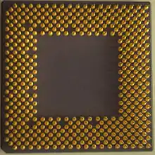 Socket A (also known as Socket 462) is a zero insertion force pin grid array (PGA) CPU socket used for AMD processors ranging from the Athlon Thunderbird to the Athlon XP/MP 3200+, and AMD budget processors including the Duron and Sempron. Socket A also supports AMD Geode NX embedded processors (derived from the Mobile Athlon XP). It compliments (and later supersedes) the prior Slot A CPU interface used in some Athlon Thunderbird processors. The front-side bus frequencies supported for the AMD Athlon XP and Sempron are 133 MHz, 166 MHz, and 200 MHz. Socket A supports 32-bit CPUs only.