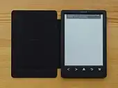 The Sony Reader (ソニー・リーダー) was a line of e-book readers manufactured by Sony. The first model was the PRS-500 released in September 2006 and was related to the earlier Sony Librie, the first commercial E Ink e-reader in 2004 using an electronic paper display developed by E Ink Corporation.[1] The last model was the PRS-T3, after which Sony announced it would no longer release a new consumer e-reader.[2]