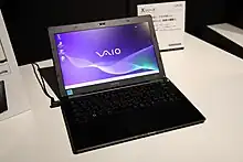 The Vaio X series is a line of high-end ultraportable notebook computers from Sony introduced in September 2009, claiming to be the world's lightest notebook, at 655 grams ((with special lighter battery, standard weight is 780 grams [1])). It features an 11.1", 16:9, 1366x768 LED-lit LCD screen with built-in webcam, 2GB of DDR2 RAM, a choice of 64, 128 or 256 GB SSD (no hard drive option, SSD choice depends on territory), Intel Atom Z540 1.86 GHz or Z550 2.00 GHz (CPU choice varies by territory), WWAN (HSDPA, UMTS, EDGE and GPRS built-in).