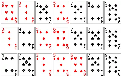 One application for stable sorting algorithms is sorting a list using a primary and secondary key. For example, suppose we wish to sort a hand of cards such that the suits are in the order clubs (♣), diamonds (♦), hearts (♥), spades (♠), and within each suit, the cards are sorted by rank. This can be done by first sorting the cards by rank (using any sort), and then doing a stable sort by suit:
