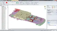 ![]() Screenshot of SpaceClaim Engineer displaying a multi-body part (center) and the ribbon interface (top) | |