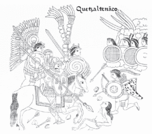Page from the Lienzo de Tlaxcala showing the conquest of Quetzaltenango