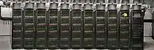 SpiNNaker (spiking neural network architecture) is a massively parallel, manycore supercomputer architecture designed by the Advanced Processor Technologies Research Group (APT) at the Department of Computer Science, University of Manchester.[2] It is composed of 57,600 processing nodes, each with 18 ARM9 processors (specifically ARM968) and 128 MB of mobile DDR SDRAM, totalling 1,036,800 cores and over 7 TB of RAM.[3] The computing platform is based on spiking neural networks, useful in simulating the human brain (see Human Brain Project).[4][5][6][7][8][9][10][11][12]