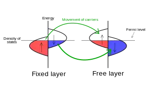 Spin-transfer torque can be used to flip the active elements in magnetic random-access memory. Spin-transfer torque magnetic random-access memory (STT-RAM or STT-MRAM) is a non-volatile memory with near-zero leakage power consumption which is a major advantage over charge-based memories such as SRAM and DRAM. STT-RAM also has the advantages of lower power consumption and better scalability than conventional magnetoresistive random-access memory (MRAM) which uses magnetic fields to flip the active elements.[1] Spin-transfer torque technology has the potential to make possible MRAM devices combining low current requirements and reduced cost; however, the amount of current needed to reorient the magnetization is presently too high for most commercial applications, and the reduction of this current density alone is the basis for present academic research in spin electronics.[2]