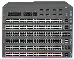 A stackable switch is a network switch that is fully functional operating standalone but which can also be set up to operate together with one or more other network switches, with this group of switches showing the characteristics of a single switch but having the port capacity of the sum of the combined switches.