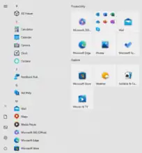 Version 1607 and later remove the recent apps view, always showing all apps. Version 20H2 replaced the colorful tiles in previous versions with transparent "theme-aware" tiles.