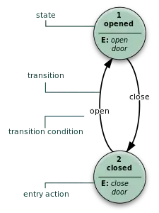 There are other sets of semantics available to represent state diagrams. For example, there are tools for modeling and designing logic for embedded controllers.[6] These diagrams, like Harel's original state machines,[7] support hierarchically nested states, orthogonal regions, state actions, and transition actions.[8]
