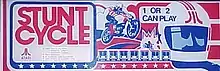 Stunt Cycle is an arcade video game by Atari, Inc., originally released in 1976.[1] In the style of the Evel Knievel craze of the mid-1970s, the game allows the player to perform simulated motorcycle jumping stunts. The arcade cabinet is modeled like a real motorcycle handlebar, and the player twists the right side for acceleration. The monitor is a 19-inch black and white cathode-ray tube with a black and white overlay. It accommodates 1 player or 2 players alternating.
