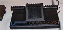Two dedicated console versions were released by Atari in 1977. Atari's own branded Stunt Cycle version plays four games: a version of the original and three variants (Motocross, Enduro, and DragRace) based on the AY-3-8760 chip by General Instrument. Handlebar grips on the unit allow players to whip, wheelie, and jump up to 32 onscreen buses. The unit provides digital on-screen scoring and color graphics.[2]: 26 [3] The Sears Tele-Games version called Motocross Sports Center IV includes the same Stunt Cycle variants and 16 Pong games played with detachable Pong controllers (based on Atari C010765 chip for the Pong games and the GI chip AY-3-8760).[2]: 26