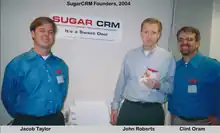 John Roberts conceived of the idea and name of SugarCRM while riding his mountain bike named Sugar in the Santa Cruz Mountains. Clint Oram, John Roberts, and Jacob Taylor started full-time work on the SugarCRM open source project in April 2004, and incorporated the company in California in June 2004. Roberts served as the CEO from 2004 to 2009, Oram was the vice president, and Taylor was the CTO & vice president of engineering.