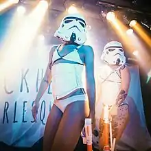 The Blackheart Burlesque hosts a show of cult-classic numbers including performances based on Star Wars and The Rocky Horror Picture Show and pop culture references like Game of Thrones and Fifty Shades of Grey. As of 2016, the show is hosted by Sunny Suicide and Katherine Suicide and features a changing lineup of dancers. The shows have an element of audience participation and guests are encouraged to take photos of the performers and share them on social media.[28][29]