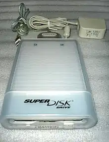 The SuperDisk LS-120 is a high-speed, high-capacity alternative to the 90 mm (3.5 in), 1.44 MB floppy disk. The SuperDisk hardware was created by 3M's storage products group Imation in 1996,[1] with manufacturing chiefly by Matsushita.
