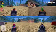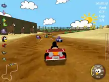 SuperTuxKart's gameplay is similar to that of the Mario Kart series, but also has distinct elements, such as collecting and using cans of Nitro. The game features the mascots of several open source projects. For example, Mozilla Thunderbird plays the referee, flagging the start of the race and saving players when they drive off the course. The game supports single player, local multiplayer, WAN multiplayer, and LAN multiplayer modes. Networking modes were introduced in version 1.0.[6][7]