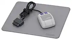 The Super NES Mouse, sold as the Super Famicom Mouse (スーパーファミコンマウス, Sūpā Famikon Mausu) in Japan, is a peripheral created by Nintendo for the Super Nintendo Entertainment System. It was released in 1992, on July 14 in Japan, in August in North America, and on December 10 in Europe. Originally designed for use with the game Mario Paint, the Super NES Mouse was sold in a bundle with the game and included a plastic mouse pad. Soon after its introduction, several other titles were released with Mouse support.