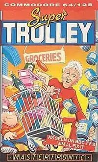 Super Trolley, is a 1988 video game produced by Icon Design where the player takes control of a supermarket employee. It was created as a tie-in with the BBC show Jim'll Fix It.