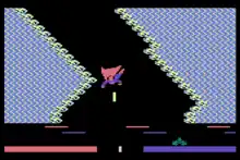 Originally released in 1985 for the Commodore 64 in the US by developer First Star Software, it was picked up in the UK by Beyond Software. Beyond also advertised conversions for the ZX Spectrum, Amstrad CPC, and Atari 8-bit computers, but not all of them made it to release.[3] Telecomsoft released the Spectrum version for the first time at a budget price in 1986.[3] In 1987 Prism Leisure Corporation published the game. This included all of the previous versions as well as new conversions for the Commodore 16/Plus/4, BBC Micro and Acorn Electron. The new conversions did not contain the combat zones.