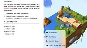In addition to publishing the Swift Playgrounds application itself, Apple also produces a series of educational lessons teaching programming and debugging skills.[3] The application can also subscribe to lessons and other content published by third parties,[4][5] including lessons allowing users to control educational toys such as Lego Mindstorms EV3 and Sphero robots.[6] Apple publishes a curriculum guide for educators wishing to incorporate Swift Playgrounds into their teaching.[7]