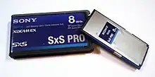 SxS PRO+ is a faster version of SxS designed for the recording of 4K resolution video.[5][6] SxS Pro+ has a guaranteed minimum recording speed of 1.3 Gbit/s and an interface with a theoretical maximum speed of 8 Gbit/s.[5][6]