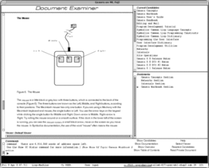 Symbolics Document Examiner is a powerful and early hypertext system developed at Symbolics (a manufacturer of high-end workstations) by Janet Walker in 1985. The Symbolics Document Examiner was first used for a hypertext implementation of the Symbolics manual in the sixth release of the Genera operating system, and was well liked, winning an award from the Society for Technical Documentation.[1]