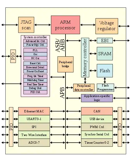 Historically, a shared global computer bus typically connected the different components, also called "blocks" of the SoC.[13] A very common bus for SoC communications is ARM's royalty-free Advanced Microcontroller Bus Architecture (AMBA) standard.