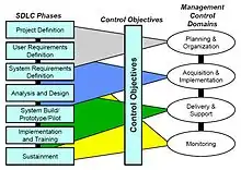 SDLC phase objectives are described in this section with key deliverables, a description of recommended tasks, and a summary of related control objectives for effective management. It is critical for the project manager to establish and monitor control objectives while executing projects. Control objectives are clear statements of the desired result or purpose and should be defined and monitored throughout a project. Control objectives can be grouped into major categories (domains), and relate to the SDLC phases as shown in the figure.[22]
