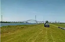 Lopez spotted a grass levee to the right of the canal, and suggested that the emergency landing be attempted there. Dárdano agreed and, using sideslip to reduce speed while dropping the altitude necessary to reach the narrow grass levee, successfully carried out an emergency landing of the crippled plane. The levee stands on the grounds of the NASA Michoud Assembly Facility (MAF) in eastern New Orleans, near the Intracoastal Waterway's confluence with the Mississippi River Gulf Outlet.[7]