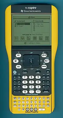 The TI-Nspire is a graphing calculator line made by Texas Instruments, with the first version released on 25 September 2007.[1] The calculators feature a non-QWERTY keyboard and a different key-by-key layout than Texas Instruments's previous flagship calculators such as the TI-89 series.