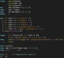 ![]() TMG program with highlighted syntax | |