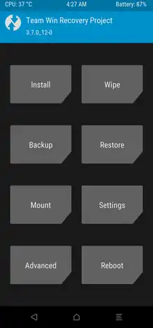 ![]() Main screen of TWRP 3.7.0_12-0 | |