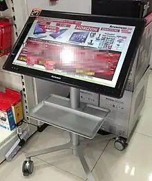 Table computers feature an 18-inch or larger multi-touch touchscreen display, a battery capable of at least 2 hours of autonomous work and a full-featured desktop operating system, such as Windows 10. They are typically shipped with pre-installed multi-user touch-enabled casual games and apps, and typically marketed as family entertainment devices. Manufacturers of some table computers provide a specialized graphical user interface to simplify a simultaneous interaction of multiple users, one example is Aura[2] interface, which is installed in Lenovo IdeaCentre Horizon tabletop.