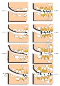 - ↑ Lunt Roger C., Law David B. (October 1974). "A review of the chronology of eruption of deciduous teeth". The Journal of the American Dental Association. 89 (4): 872–879. doi:10.14219/jada.archive.1974.0484. PMID 4609369.