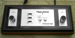 The Telejogo (Portuguese for telegame, with tele being short for televisão, portuguese for television) is a dedicated first-generation[1] home video game console that was released on August 2, 1977 by Philco and Ford in Brazil.[2][3] It is a Pong clone console[4] and the first video game console ever released in Brazil.[2] The original Telejogo performed well on the market for the time.[5] In 1979, a successor called Telejogo II was released.[3]