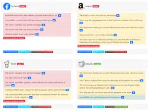 ![]() A screenshot showing example ratings from ToS;DR | |