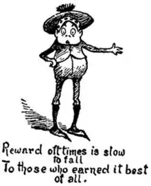 Published in 1899, The Brownies Abroad is considered the first Brownie comic strip, though it was mostly a text comic. It didn't utilise speech balloons until the publication The Brownie Clown of Brownie Town of 1908.[6] From 1903, The Brownies appeared as a newspaper Sunday strip for several years.[4]