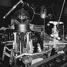 Robot Theater A collection of robots were arrayed inside a theater, each of which, when highlighted in the theater's video program, lit up and, in several cases, performed movements. Mobile robots included: Shakey, Prototype Mars Rover, the Stanford Cart,[20] the quadruped Titan III from the Tokyo Institute of Technology, and a Denning Mobile Robot; robot arms included Unimate I, the Rancho and Stanford Arms and Orm from Stanford, the Direct Drive Arm-1 from Carnegie Mellon University, and the Tentacle Arm from MIT.[19]