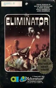 The Eliminator is a horizontally scrolling shooter video game written by Terry Gilman and Wayne Westmoreland for the TRS-80 and published by Adventure International in 1981.[2] It was ported to the Atari 8-bit computers and Apple II. The Eliminator is a clone of the Defender arcade game.[1]