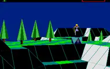 The IBM PC port supports VGA graphics, with an additional lighting effect: objects and terrain become darker the farther away they are from the point of view. The Amiga port has a sampled soundtrack by David Whittaker.