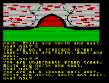 Another difference is that the player has only seven days, within the game's clock, to complete the game. Quests are also time-based and require that the player arrive at certain locations at specific hours to achieve the desired goal. And while game play remains the same, the backdrop is no longer an action adventure, but a political thriller that resembles the novel Nineteen Eighty-Four. Similar to what happened when Snowball was released, there was certain confusion about the main character's identity and the time when the story is set. The Level 9 Fact Sheet says: "...a couple of years later, Kim Kimberley has become a legend on Eden."[4] Another article stated: "Worm in Paradise is set 100 years later. You are now Kim Kimberley III..."[5] Furthermore, Pete Austin said, "Worm is set on Eden, about 50 years in the future" and "The player is not Kim - she becomes mayor and runs the place."[6] Notice that these sources termed the game by its original name, Worm in Paradise.