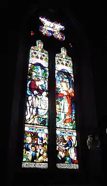 He died on 31 March 1843 of Dropsy of the Chest.[1] Fowler has a memorial window in the Chapel of St James in the Church of St Michael and All Angels in his native Great Torrington.[4] The window was commissioned by his son Hugh around 1864.[1] The border shows two of his inventions: the thermosiphon and a calculating machine.[5][6]