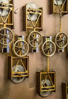 Tide-Predicting Machine No. 2, also known as Old Brass Brains,[1] was a special-purpose mechanical computer that uses gears, pulleys, chains, and other mechanical components to compute the height and time of high and low tides for specific locations. The machine can perform tide calculations much faster than a person could do with pencil and paper. The United States Coast and Geodetic Survey put the machine into operation in 1910. It was used until 1965, when it was replaced by an electronic computer.[2]