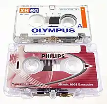 | Minicassette | Analog, 1⁄8 inch wide tape, used generally for note taking, 1.2 cm/s | |