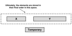 First, Timsort performs a binary search to find the location where the first element of the second run would be inserted in the first ordered run, keeping it ordered. Then, it performs the same algorithm to find the location where the last element of the first run would be inserted in the second ordered run, keeping it ordered. Elements before and after these locations are already in their correct place and do not need to be merged. Then, the smaller of these shrunk runs is copied into temporary memory, and the copied elements are merged with the larger shrunk run into the now free space. If the leftmost shrunk run is smaller, the merge proceeds from left to right. If the rightmost shrunk run is smaller, merging proceeds from right to left (i.e. beginning with elements at the ends of the temporary space and leftmost run, and filling the free space from its end). This optimization reduces the number of required element movements, the running time and the temporary space overhead in the general case.