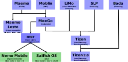 In 2011, after Nokia abandoned the project, Linux Foundation initiated the Tizen project as a successor to MeeGo, another Linux-based mobile operating system, with its main backer Intel joining Samsung Electronics, as well as Access Co., NEC Casio, NTT DoCoMo, Panasonic Mobile, SK Telecom, Telefónica, and Vodafone as commercial partners. Tizen would be designed to use HTML5 apps, and target mobile and embedded platforms such as netbooks, smartphones, tablets, smart TVs, and in-car entertainment systems.[3] U.S. carrier Sprint Corporation (which was a backer of MeeGo) joined the Tizen Association in May 2012.[4] On September 16, 2012, Automotive Grade Linux announced its intent to use Tizen as the basis of its reference distribution.[5]