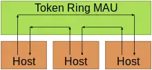 Physically, a Token Ring network is wired as a star, with 'MAUs' in the center, 'arms' out to each station, and the loop going out-and-back through each.[20]