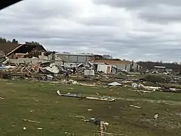 ![]() EF3 damage to the Wade Services manufacturing plant near Laurel, Mississippi. | |