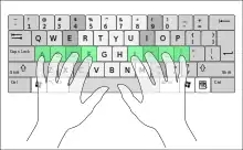 For instance, to type the word poll on a QWERTY keyboard, one would place all of one's fingers on the home row. (The right hand should be covering "J K L ;" with the right thumb on the space bar while the left hand covers "A S D F" with the left thumb on the space bar.) The typist will then use their little finger to reach for the "P" key located just above the semicolon and then return the little finger back to the semicolon key from which it originated. The ring finger, located on the "L" key will be moved directly upwards to press the "O" key and then back. Finally, the same ring finger will remain on the "L" key and press it twice. Experienced typists can do this at speeds of over 100 words per minute.[15]