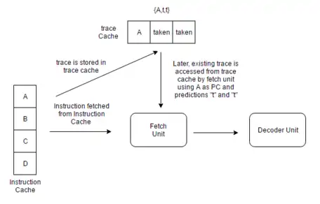 Once fetched, the trace cache stores the instructions in their dynamic sequence. When these instructions are encountered again, the trace cache allows the instruction fetch unit of a processor to fetch several basic blocks from it without having to worry about branches in the execution flow. Instructions will be stored in the trace cache either after they have been decoded, or as they are retired. However, instruction sequence is speculative if they are stored just after decode stage.