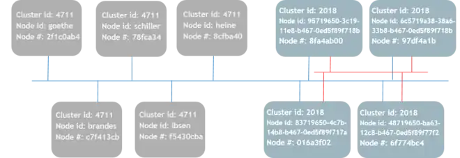 A TIPC network consists of individual processing elements or nodes. Nodes can be either physical processors, virtual machines or network namespaces, e.g., in the form of Docker Containers. Those nodes are arranged into a cluster according to their assigned cluster identity. All nodes having the same cluster identity will establish links to each other, provided the network is set up to allow mutual neighbor discovery between them. It is only necessary to change the cluster identity from its default value if nodes in different clusters potentially may discover each other, e.g., if they are attached to the same subnet. Nodes in different clusters cannot communicate with each other using TIPC.