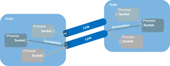 Nodes are interconnected with one or two links- When all contact to the peer node is lost, sockets with connections to that peer are notified so they can break the connections.