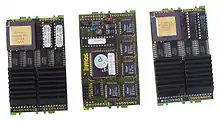To provide an easy means of prototyping, constructing and configuring multiple-transputer systems, Inmos introduced the TRAM (TRAnsputer Module) standard in 1987. A TRAM was essentially a building block daughterboard comprising a transputer and, optionally, external memory and/or peripheral devices, with simple standardised connectors providing power, transputer links, clock and system signals. Various sizes of TRAM were defined, from the basic Size 1 TRAM (3.66 in by 1.05 in) up to Size 8 (3.66 in by 8.75 in). Inmos produced a range of TRAM motherboards for various host buses such as Industry Standard Architecture (ISA), MicroChannel, or VMEbus. TRAM links operate at 10 Mbit/s or 20 Mbit/s.[11]